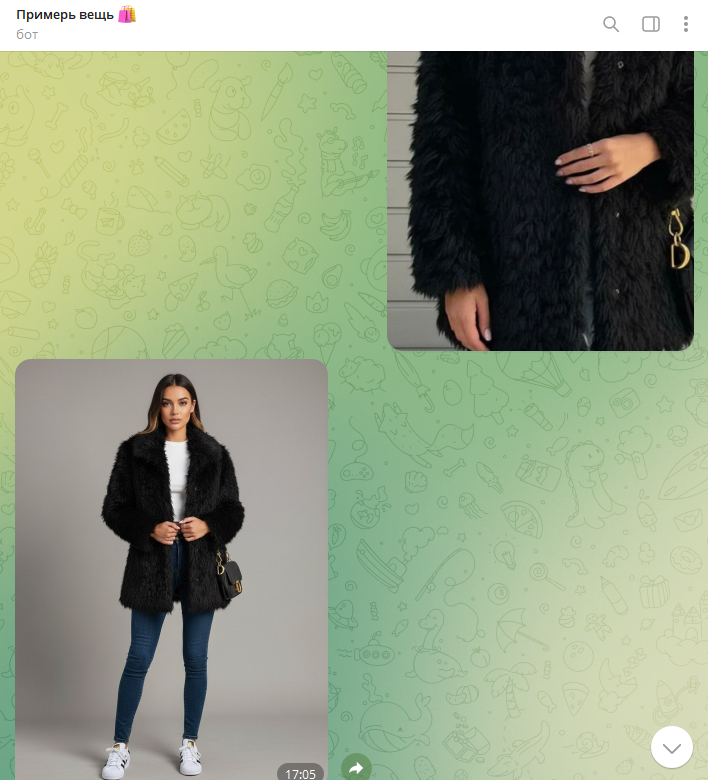 • По фото пользователя и ссылке/скрину товара показывает, как вещь с Wildberries или Ozon будет смотреться на вашем силуэте: посадка, длина, примерный силуэт.