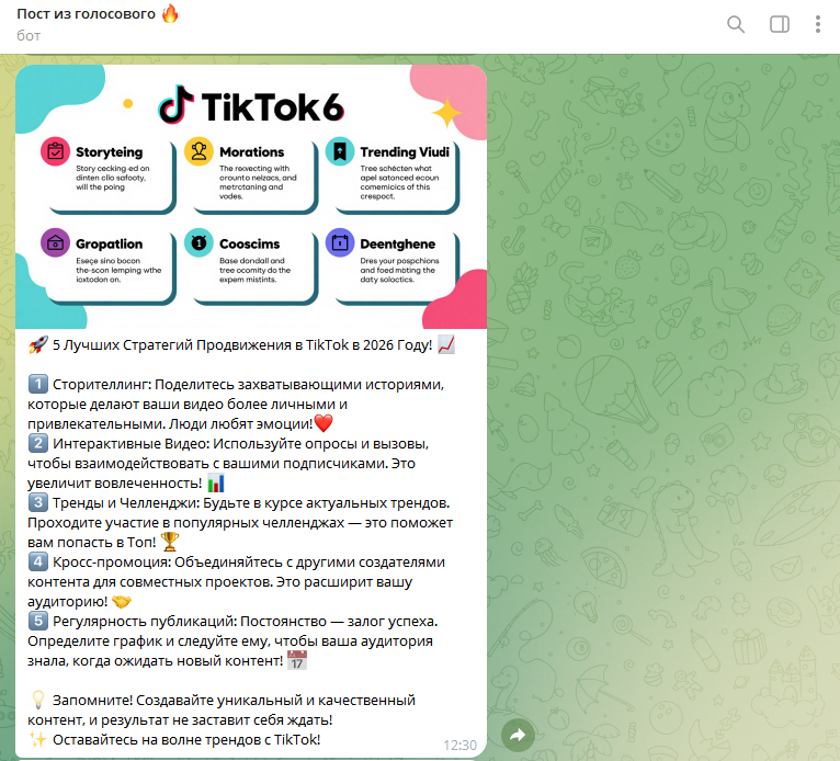 4) Пост из голосового - мощный генератор постов для тг каналов из голосового сообщения