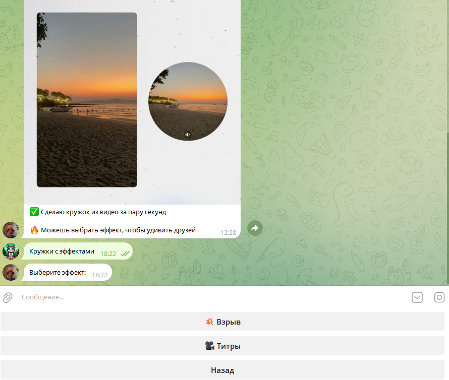 Преобразует короткое видео в визуально эффектный зацикленный клип в круглой маске: добавляет плавный луп, световые эффекты, градиенты, рамки, глитч‑переходы, замедленные моменты (cinemagraph), и возвращает в формате MP4/WebM или как стикер/анимация.