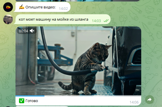 - Что умеет: Вы пишете сценарий на 10 секунд, а бот выдает HD-ролик с правильной физикой и светом. Идеально для сторис или мемов.