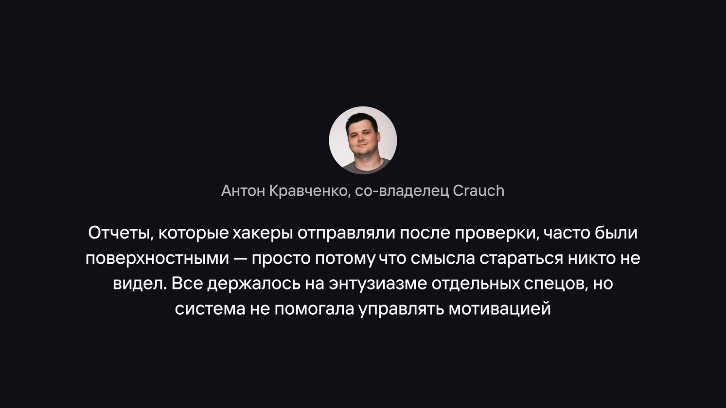 Привет! На связи Антон Кравченко, CEO студии Crauch. В статье расскажу, как мы сделали платформу, где белые хакеры могут соревноваться, расти и зарабатывать, а компании — находить лучших спецов в кибербезе. Это история о том, как поиск уязвимостей превращается из проблемы в победу для всех.
