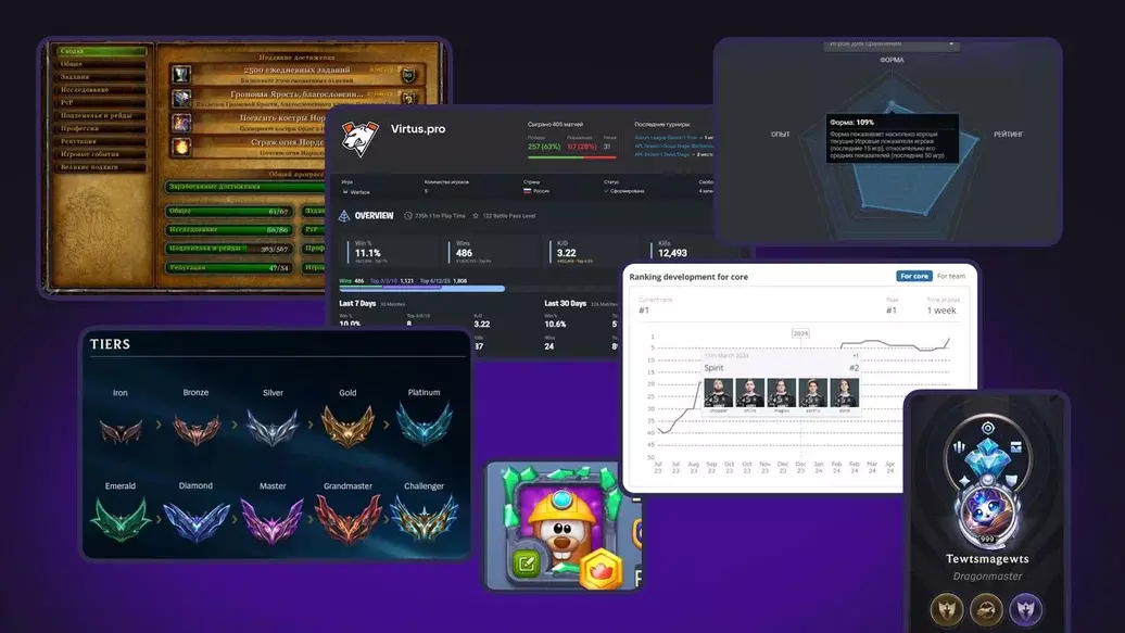 Мы разобрали HLTV, Speedrun, League of Graphs, Fortnite Tracker, интерфейсы в Dota 2, FIFA и других соревновательных платформах. Обратили внимание, как там подается динамика: кто тебя догоняет, насколько стабильно ты держишься в топе, где теряешь позиции. Все это не просто «красивые метрики», а эмоциональный триггер.