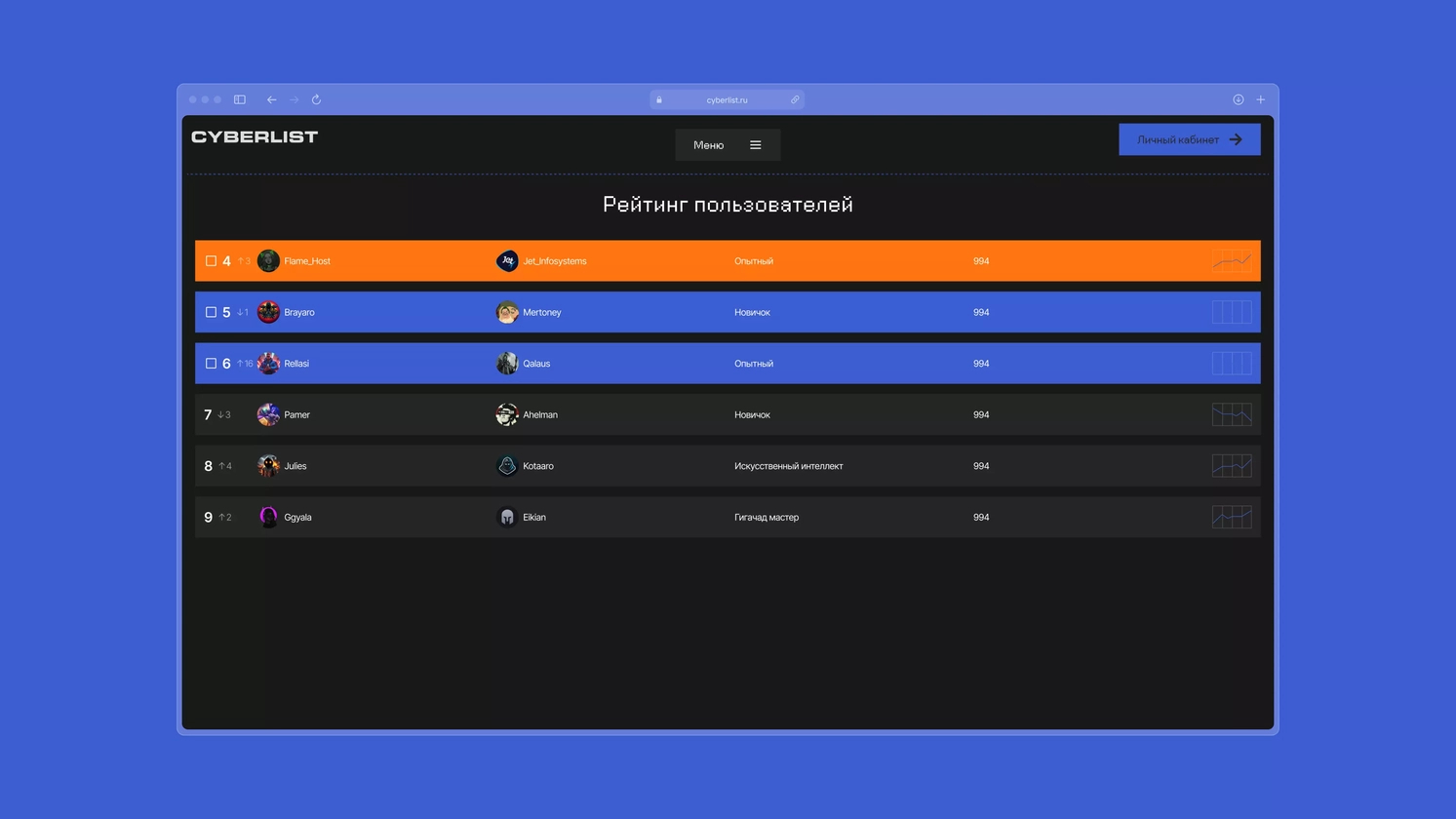Если пользователь, например, поднялся сразу на 20 позиций за неделю — его профиль обрамляется огненной рамкой. Он может быть и не в тройке, но платформа показывает: этот человек сейчас ну супер активный.