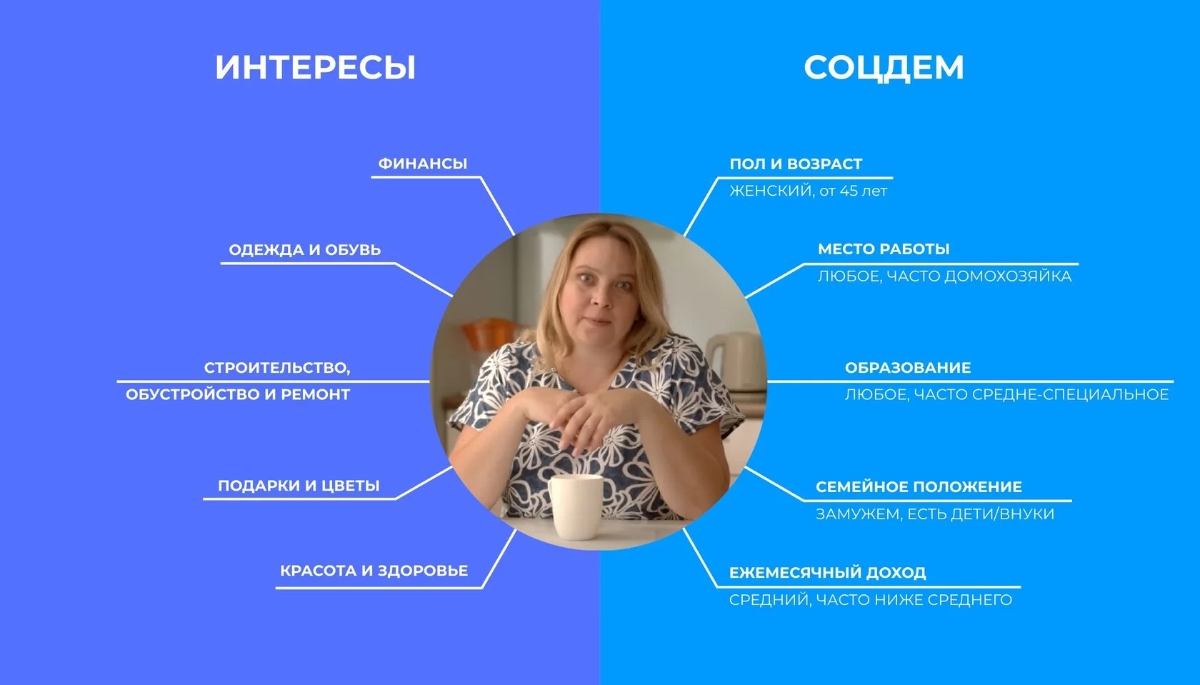 Понимание портрета целевой аудитории в сочетании с долгосрочными интересами позволило определить то, на кого нужно делать ставку в первую очередь. В нашем случае это женщины старше 45 лет, которые покупают одежду для дома, офиса, прогулок на свежем воздухе. Временами покупают одежду детям и мужьям, попутно заказывая текстиль для дома.