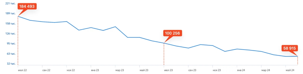 По данным Яндекс Вордстат спрос на поиске по целевым категорийным запросам снижается на 40 — 45% в течение последних двух лет.