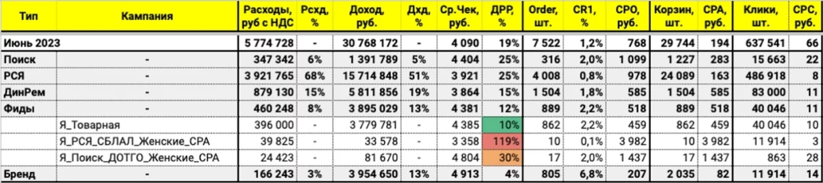 - Обеспечить еженедельной отчетностью с привязкой к ДРР и CPO