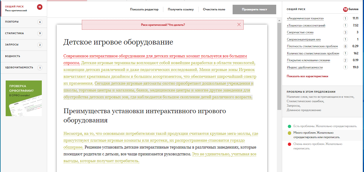Сложнее с числовыми показателями уникальности. Нужно стремиться к 90-100%. Однако в обзорах техники, например, сложно повысить уникальность текста, поскольку характеристика устройств — специфическая информация.