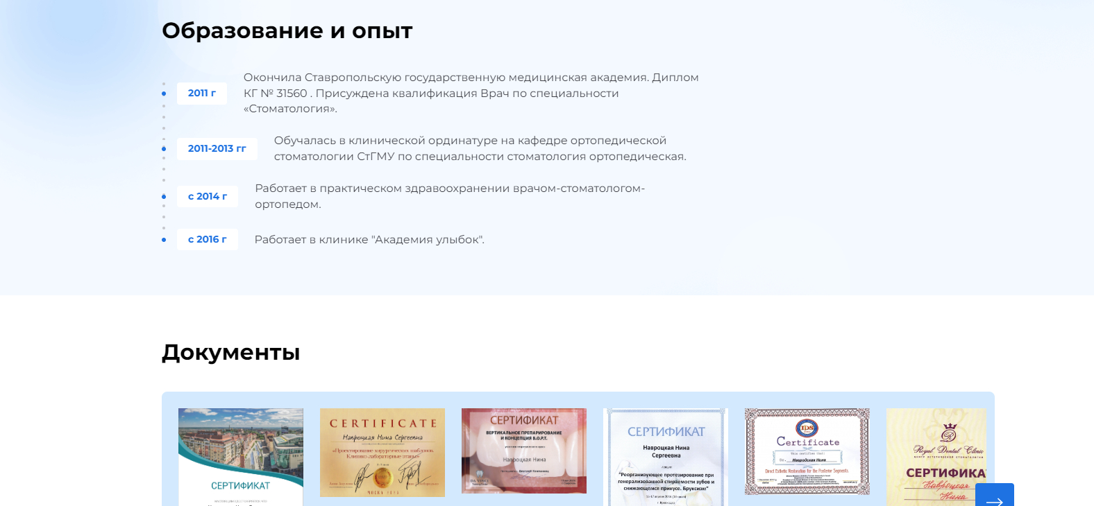 Важно также иметь персональную страницу эксперта на сайте, где представлена информация о его квалификации, опыте и сфере компетенции, а также перечень статей, написанных или проверенных им. Таким образом, экспертность автора повышает доверие к статье, а экспертность статьи – к всему сайту.