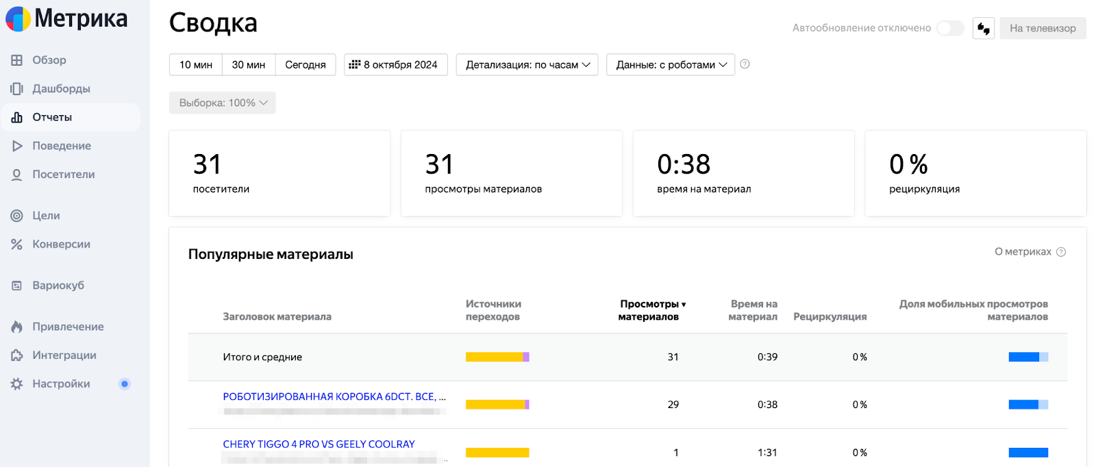 Как только ключевые фразы попадают в топ выдачи и статьи начинают отображаться в поиске, следующим шагом станет анализ трафика с помощью Яндекс Метрики. Спустя некоторое время вы сможете определить, какие статьи оказали наибольшее влияние на позиции и, соответственно, на трафик.