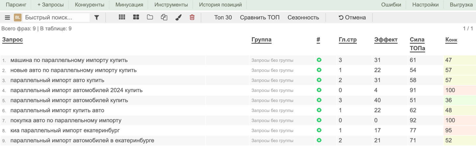Сначала важно добавить ключевые фразы в сервисы для мониторинга позиций. Если со временем вы замечаете, что статьи не показываются по выбранным ключевым фразам, это сигнализирует о необходимости провести переоптимизацию: перепишите статью, обновите или замените ключевые фразы.
