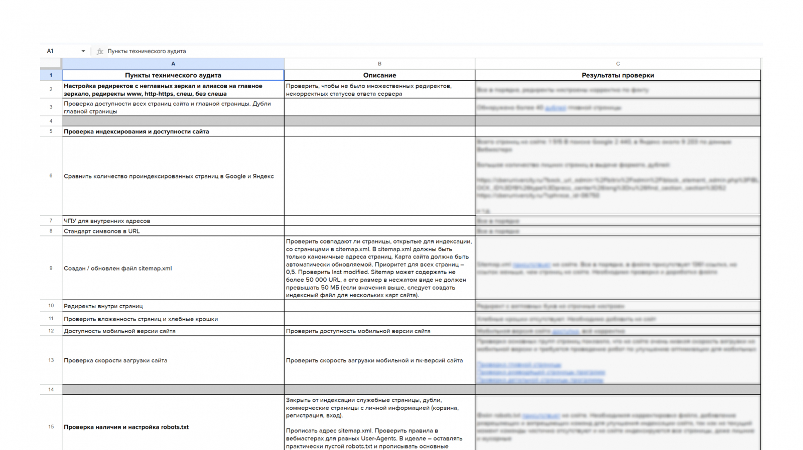 Первое, что мы сделали, — провели технический аудит и разделили все задачи по приоритетам. Для крупного корпоративного сайта важно не просто найти ошибки, а понять, что действительно влияет на рост, а что только расходует ресурсы команды.