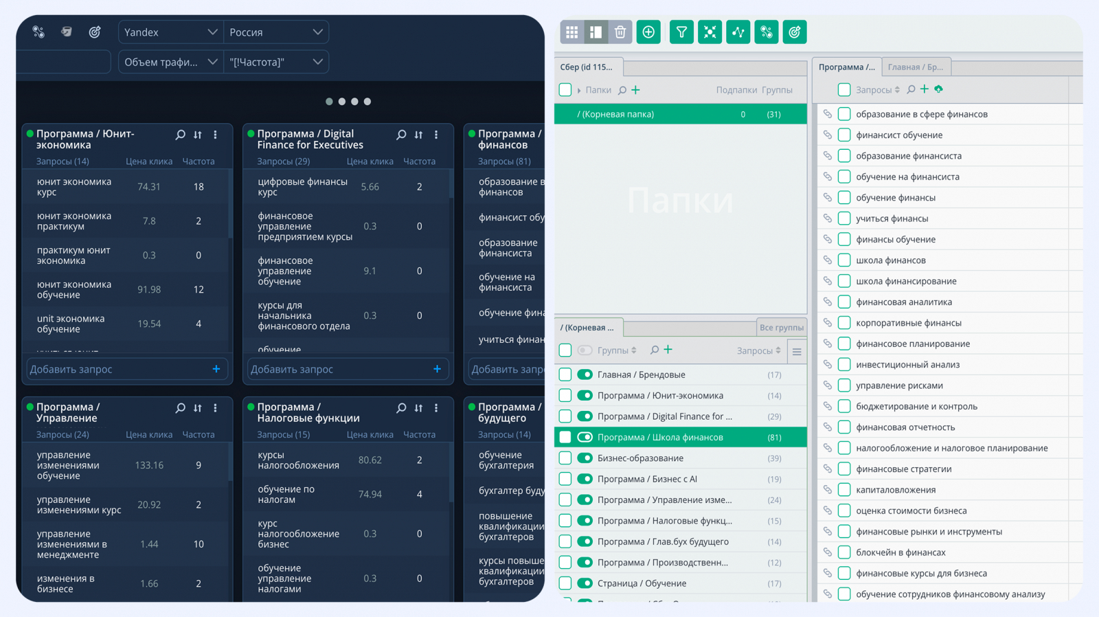 Сначала собрали и кластеризовали ядро объемом более 10 000 запросов, затем распределили его по конкретным образовательным программам. Но в работу взяли не весь массив. Мы сознательно сфокусировались примерно на 500 самых коммерческих и транзакционных запросах, которые напрямую могли влиять на заявки. Это позволило связать SEO не с абстрактным трафиком, а с конкретными продуктовыми направлениями бизнеса.