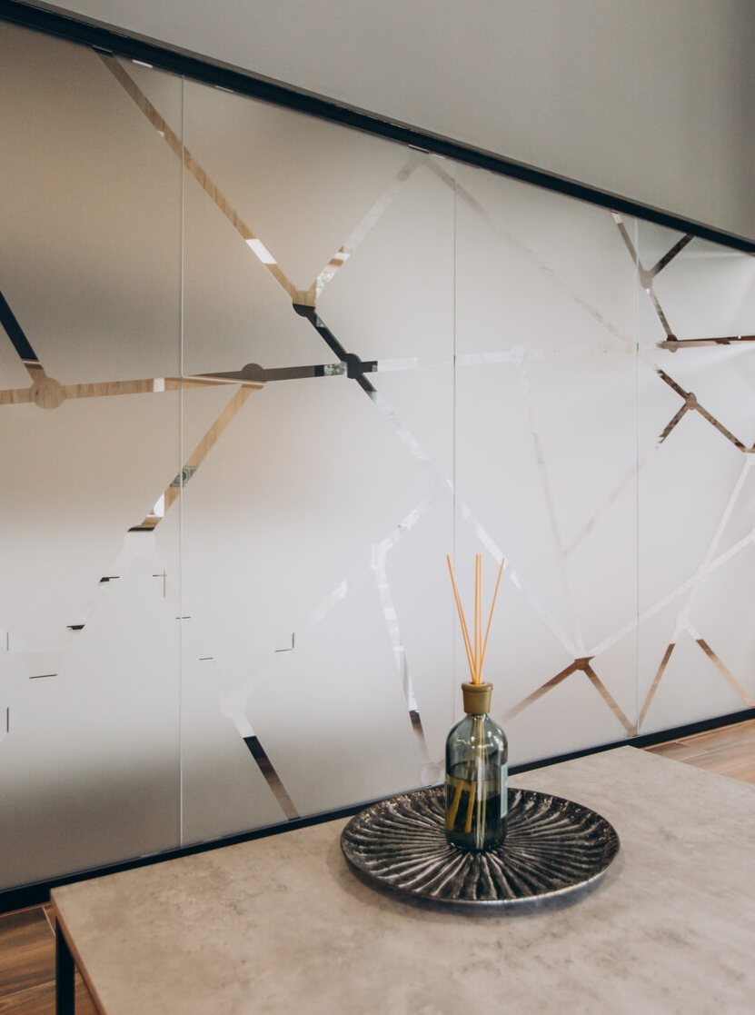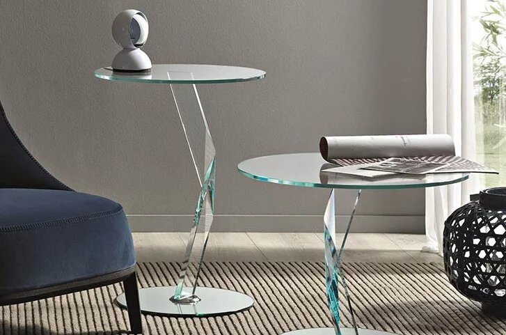 Добавляет помещению легкости и изысканности. Подчеркивает стиль и характер, увеличивает функциональность и комфорт. Используется в гостиных, кабинетах, ванных. Стеклянная мебель и декор изготавливаются из прозрачного, цветного, матового, зеркального, декоративного стекла.
