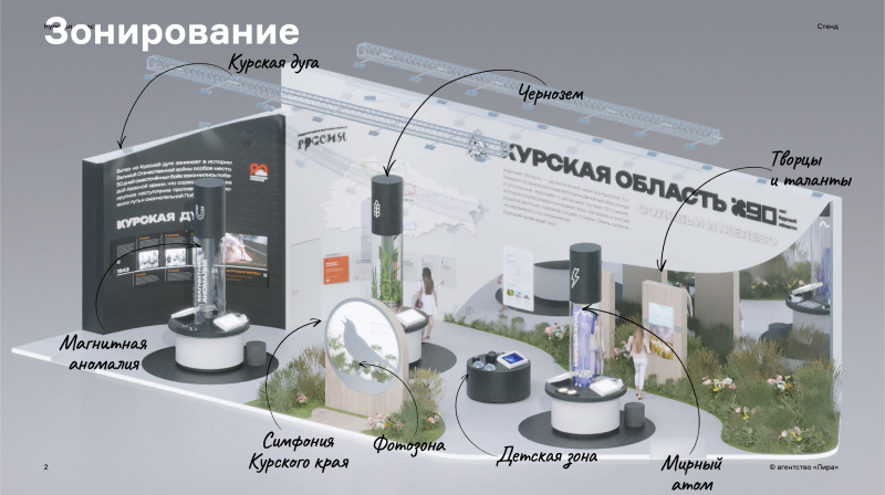 Клиент пришел в агентство Лира с задачей показать разносторонность и богатство Курской области в интересной и познавательной форме. А также замотивировать гостей посетить регион с самыми разными целями: туристической, образовательной, профессиональной. Команде агентства предстояло проработать с нуля всю концепцию и наполнение стенда. Особый акцент нужно было сделать на интерактивность для всех аудиторий — от маленьких детей до возрастных гостей.