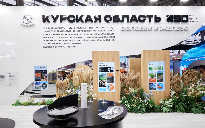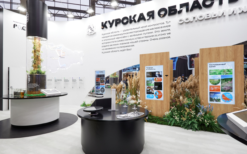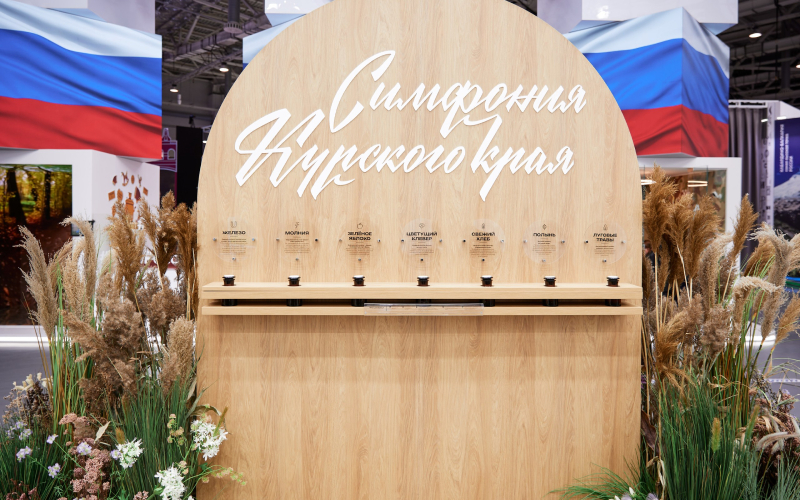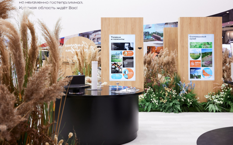 Стенд Курской области был трендсеттером на выставке. Например, идею с ароматами, одну из самых популярных активностей стенда, постепенно интегрировали и другие регионы. Отличительной фишкой стенда было внимание к деталям. Ненавязчивые ароматы разнотравья, трели соловьев, сухоцветы и искусственные, ботанически достоверно исполненные цветы и травы, — все это создавало яркий сенсорный опыт для посетителей стенда, который погружал их всецело в атмосферу региона.