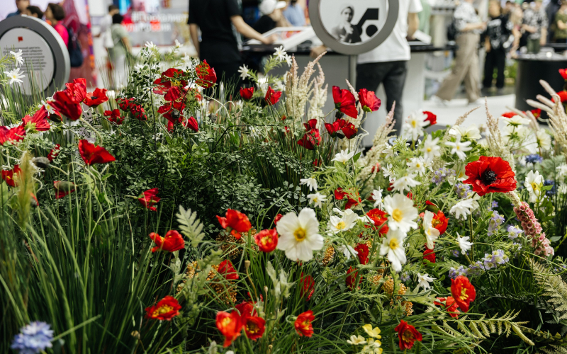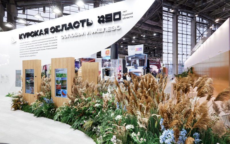 Хотелось также освежить стенд Курской области после затяжной зимы. Команда проекта поменяла озеленение и разместила не сухоцветы, а яркие цветы и растения региона. И хотя 80% растений были искусственными, гости выставки неоднократно подмечали, что они выглядели как живые.