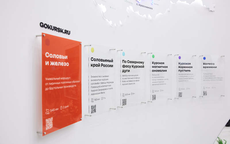 Курская область ― непростой регион для того, чтобы вычленить супер яркие образы. Получилась смешная ситуация, потому что на начальном этапе мы с заказчиком обменивались образами и подходами, и в нашей подборке — Курская дуга, Курская магнитная аномалия, атомная станция, брутальный регион, железо. Они открывают свою презентацию, а у них курские соловьи, курский чернозем, лирика, Фет. Насколько разные оказались восприятия... И мы поняли, что вот оно! Это уникальный регион, который органично сочетает в себе все эти образы и создали концепцию «Соловьи и железо». Наша концепция для Курска легла в основу туристического маршрута, которому недавно присвоили национальный статус.