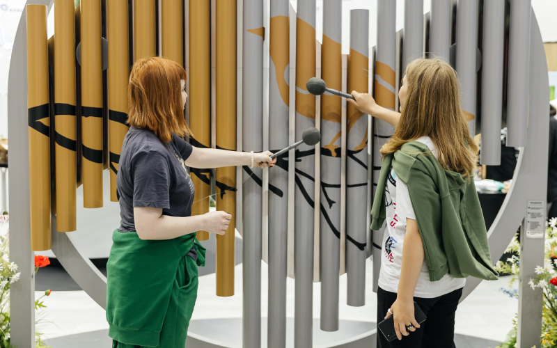 Главная фишка обновления — музыкальная фотозона. Вместо фигуры соловья поставили музыкальный инструмент «Соловьиная трель». Идею предложил дизайнер проекта, команда влюбилась в нее и специально для выставки разработали фотозону в единственном экземпляре. На ней можно было создавать музыку, ударяя по клавишам в виде железных труб, каждая из которых воспроизводила свою трель. Так команда хотела показать утонченность местной природы и «стальной» характер суровой реальности.