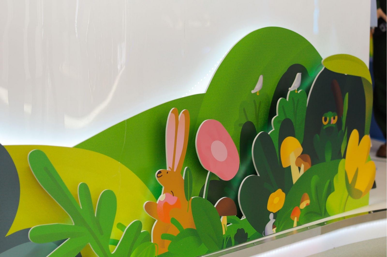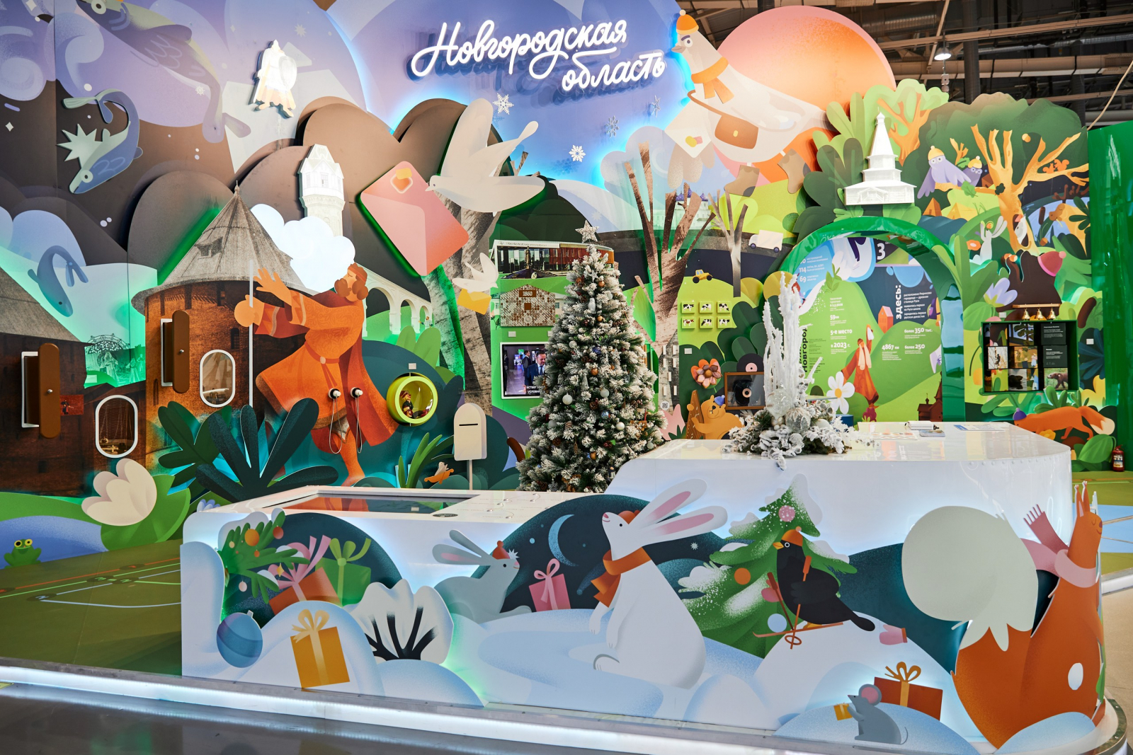 В течение выставки, по требованиям организаторов, экспоненты также должны были обновить концепции своих стендов. Чтобы изменения не ударили по бюджету региона, команда предложила не менять экспозицию целиком, а изменить только иллюстрацию с весенне-летней на зимнюю. Например, переодели персонажей в теплую одежду, надели на них шарфы и шапочки.