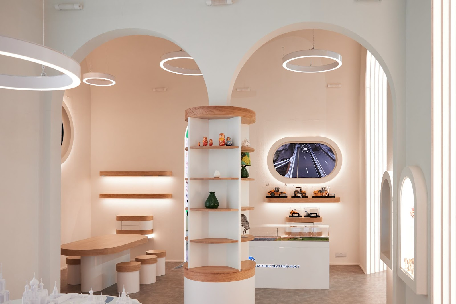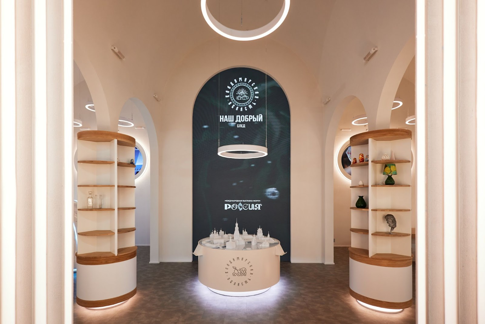 Хотелось также показать, что регион нацелен на будущее. Так родилась концепция стенда — белокаменный футуризм, в котором переплелись технологии и архитектурные традиции.