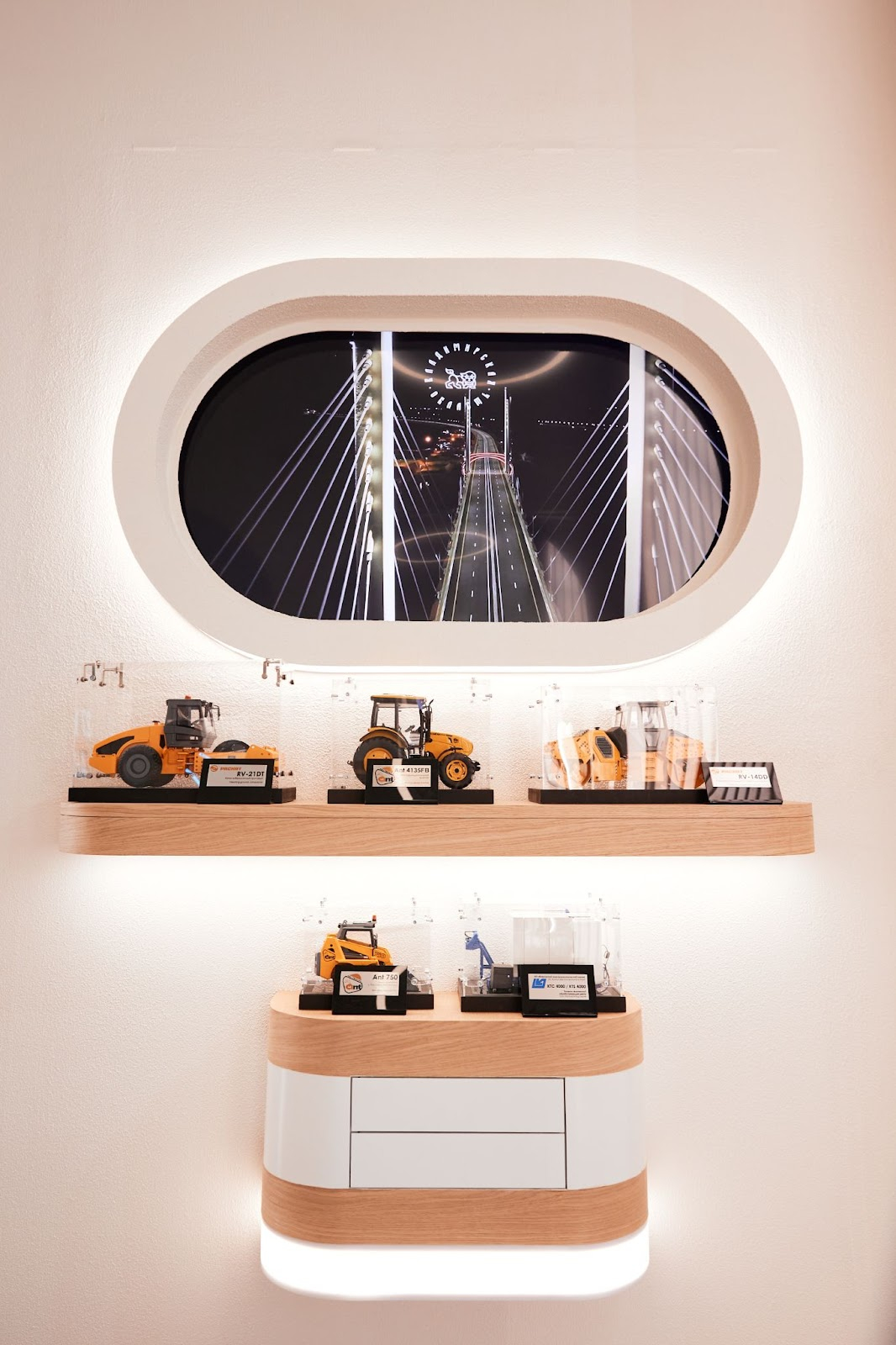 Нельзя было ограничиться только красивой архитектурой, иначе знакомство посетителей со стендом продлилось бы меньше минуты. Чтобы вовлечь гостей, мы с клиентом предусмотрели множество интерактивных зон, где каждая отражала важные направления развития региона — туризм, машиностроение, инновации и т. д.