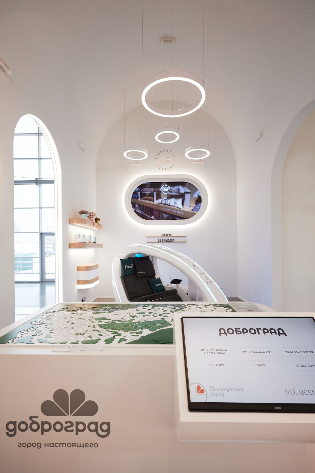 3. Виртуальный тур по Доброграду – новому городу Владимирской области, где соединились современные технологии, живописная природа и мультифункциональная среда, способная адаптироваться под потребности человека. На touch-панели организаторы предлагали гостям узнать больше о городе, совершить виртуальный тур или отправиться на видеоэкскурсию.