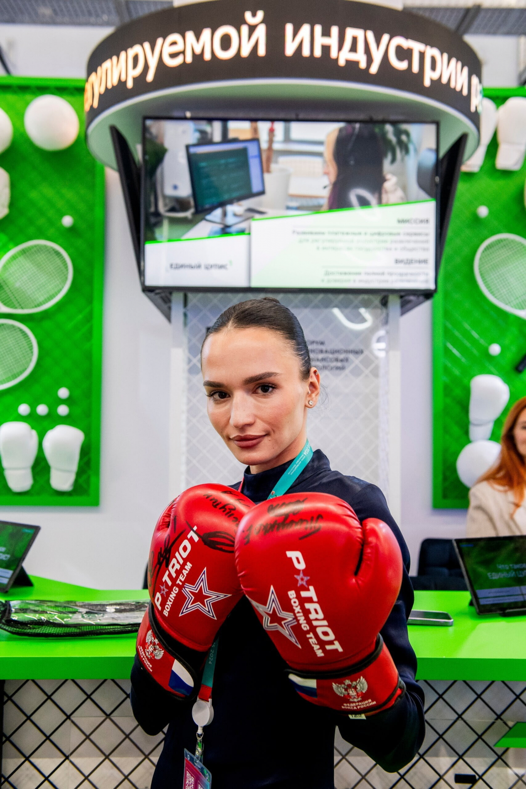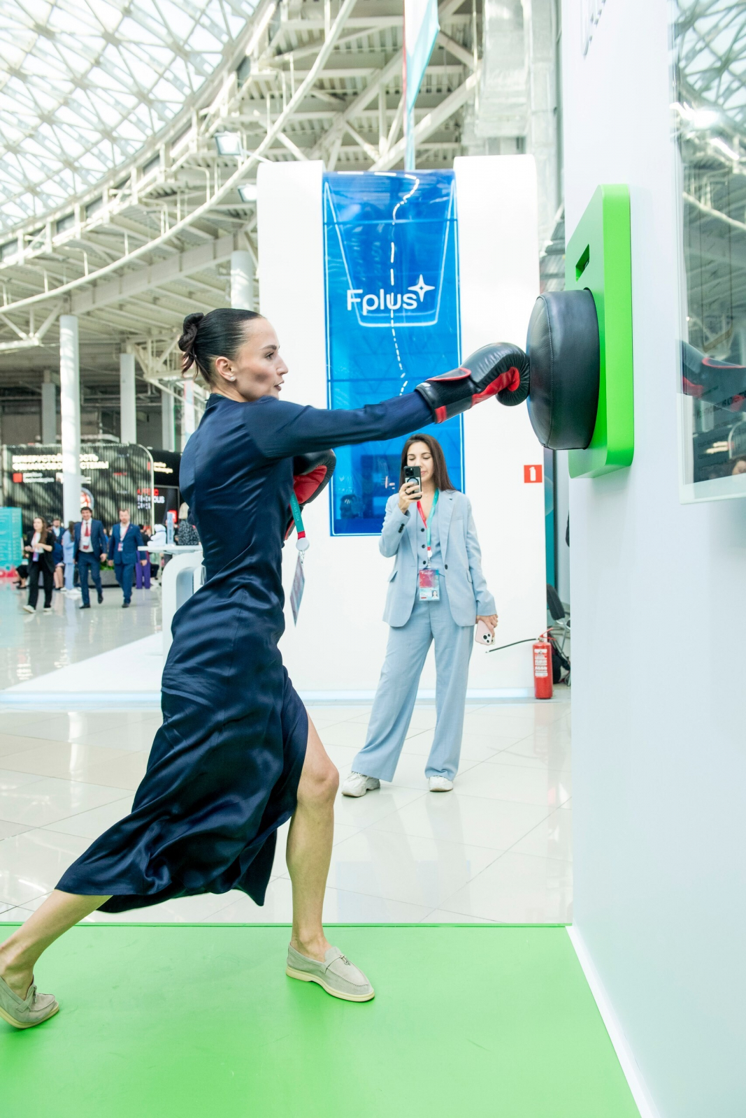 Особенно популярным среди гостей был интерактив с силомером. Для него мы придумали фишку: нужно было ударить по груше не со всей силы, а ответственно, — ровно 48 кг. Гости, ударившие наиболее точно, получали в подарок фирменные футболки для занятий спортом и спортивные бутылки, а автор самого красивого удара стал обладателем суперприза — боксерских перчаток с автографами известных российских спортсменов.