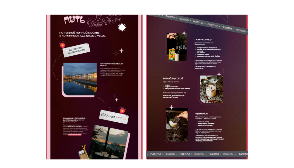 Кроме заведений и рецептов коктейлей на растительном молоке, гайд включал в себя авторские маршруты с достопримечательностями под разное настроение. Это позволяло пользователям не просто найти заведение, а прожить новый гастрономический опыт.