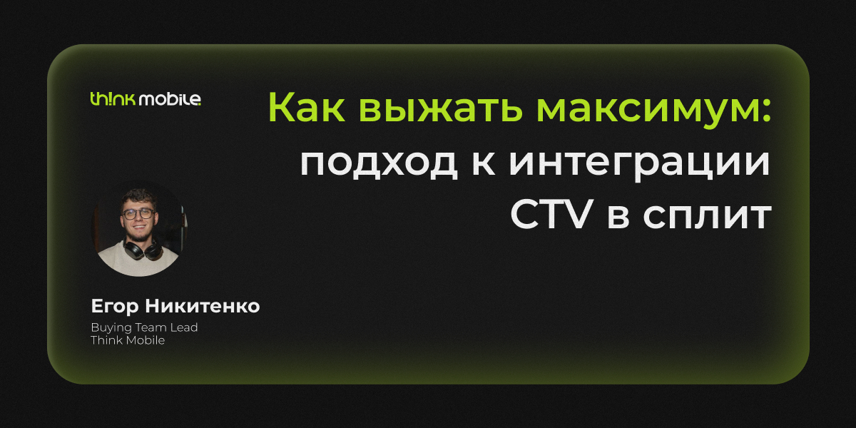 Егор Никитенко, Buying Team Lead Think Mobile, рассказал о том, как встроить CTV (Connected TV — телевизионное устройство с подключением к интернету, которое позволяет зрителям смотреть видеоконтент) в медиасплит, интегрировать его с другими источниками, чтобы не каннибализировать трафик бренда, также о настройке окон атрибуции и корректном измерении эффективности этого инструмента.