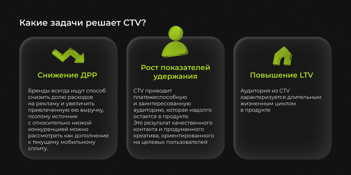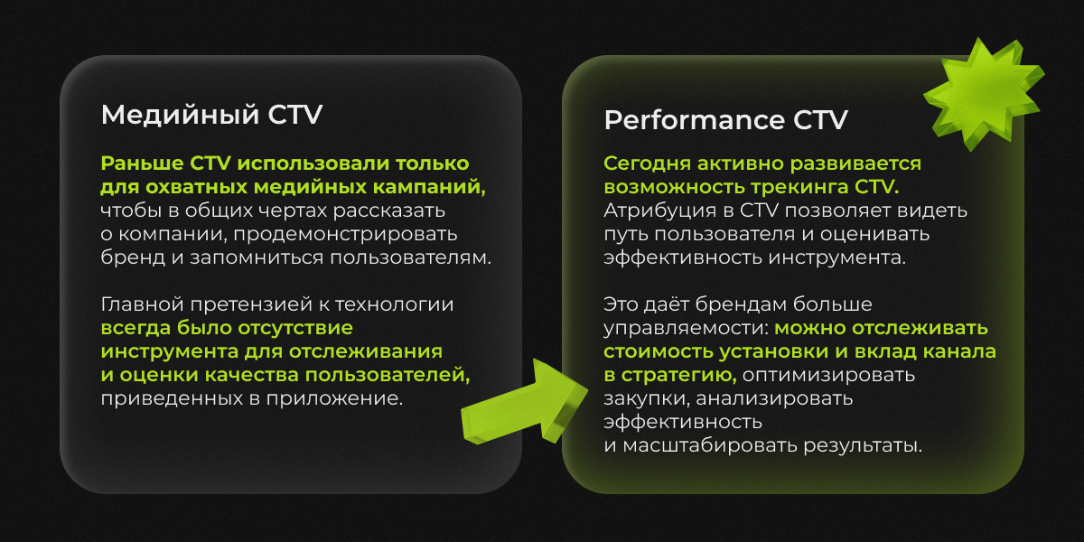Таким образом, CTV становится не просто имиджевым, а полноценным перформанс-инструментом, который работает на бизнес-результаты.