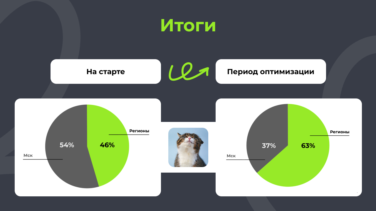 Далее кампании были оптимизированы на основе данных, полученных в процессе запуска, — чтобы не прогнозировать «вслепую», а опираться на реальные результаты и выстраивать стратегию на их основе.