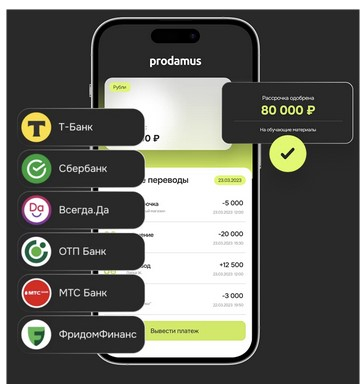 В Prodamus к рассрочке подключены сразу несколько банков. Если даже какой-либо банк не одобрил заявку, то может одобрить следующий по списку. Средняя одобряемость в Prodamus близка к 90%.