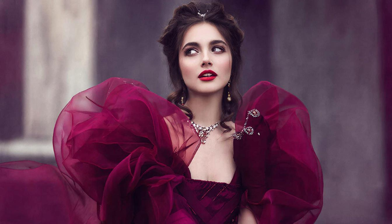 - Оперная эстетика: роскошь красного бархата в драпировках, театральный антураж, платья и костюмы.