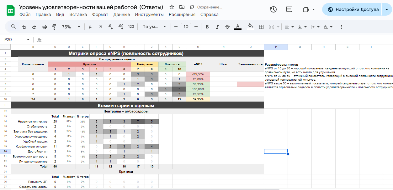 В итоге было получено более 120 ответов на вопросы, в том числе с комментариями, почему рекомендуют или не рекомендуют наше заведение.