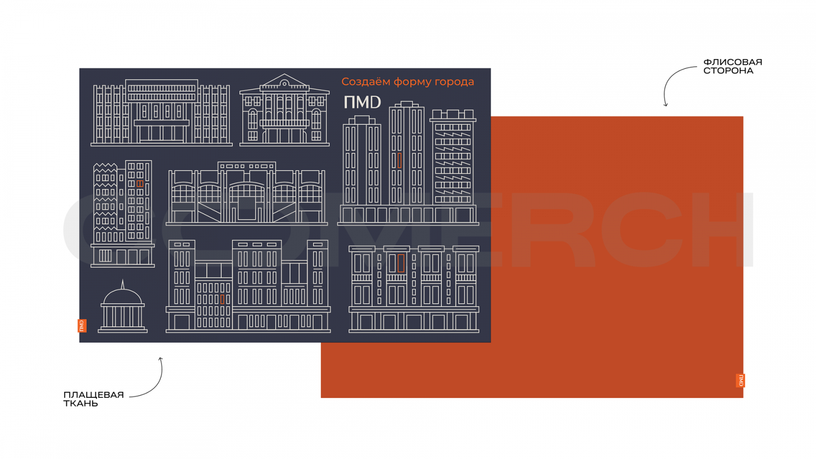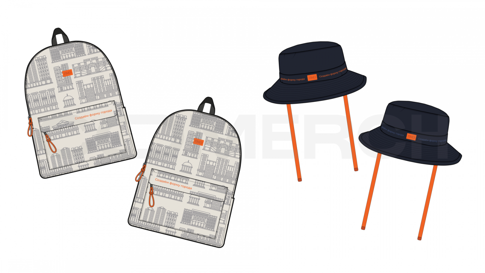 Так, например, мы создали стильную линейку аксессуаров для компании-застройщика ПМД. Трендовые рюкзаки из закатанной в фирменный паттерн плащевки создают стильный акцент. А однотонные панамы с акцентными шнурками свободно компилируются с вещами разного стиля и любой цветовой гаммы и добавляют городской романтики в образ. Приятное и необычное дополнение - двусторонний плед из контрастных материалов - плащовки с паттерном (сюжет - городская архитектура) и однотонный оранжевый флис.