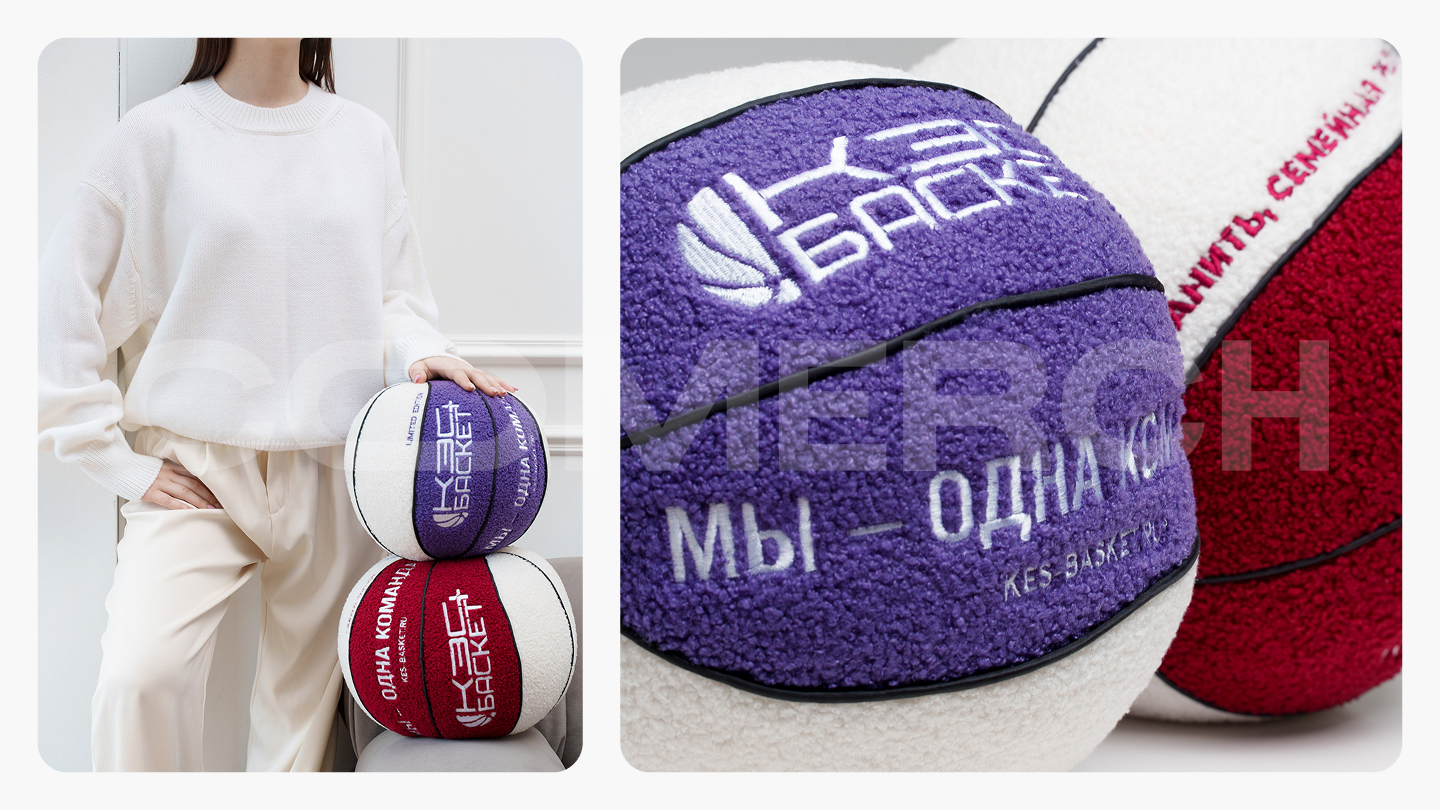 И вот тут начинается самое интересное. Вы знаете: мы не боимся выходить за рамки стандартных решений, а наоборот, всегда ищем, как добавить нашей продукции уникальности. Поэтому, когда мы с ребятами начали обсуждать, что можно включить в коллекцию для «КЭС-БАСКЕТ», то сразу поняли: игрушечные баскетбольные мячи — это именно то, что нам нужно! То, чего в мире мерча еще не было.