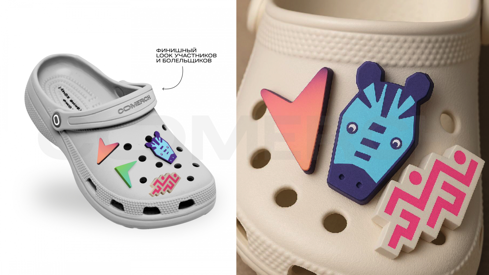Мы честно думали, что джибитсы будут просто аксессуаром. Но привезли к ним и пару кроксов, чтобы показать, как это смотрится. И не прогадали. Люди не только покупали джибитсы для украшения, но и покупали новые кроксы, чтобы сразу после марафона сменить кроссовки на удобные кроксы.