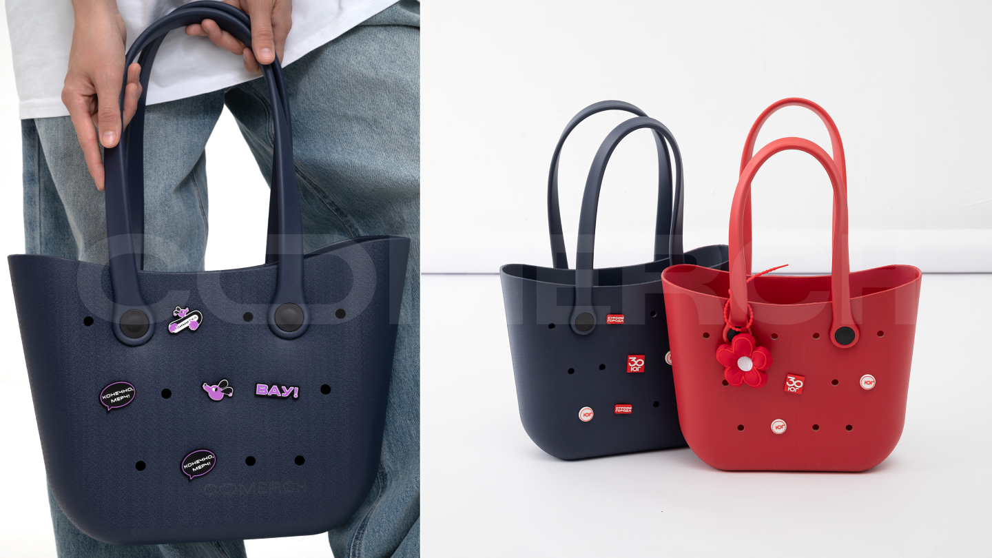 Если вам понравилась идея с кроксами, то сумка в таком же стиле — настоящий хит. Удобная, стильная, с возможностью украсить ее любимыми джибитсами, она отлично подходит для городских будней, прогулок и даже походов в магазин.