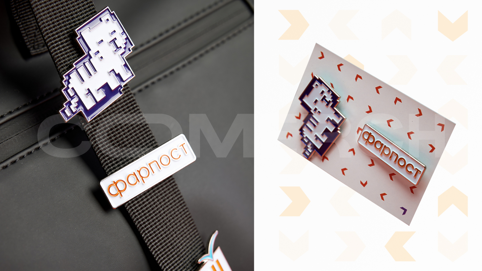 Ключевая идея корпоративного мерча для ФарПост была не только в практичности. Команда хотела добавить в подарок элемент взаимодействия, который сделает его «живым». В рюкзаке была предусмотрена стропа, которую мы использовали как инструмент для кастомизации.