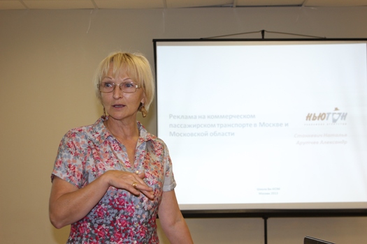 20 июня прошел очередной день «Недели транзитной рекламы». Елена Степаненко (Нью-Тон) рассказала о размещении рекламы в московском метрополитене, особенностях размещения и вернувшемся формате «метрокомплимент». Елена Лазарева (Нью-Тон) осветила вопросы регионального размещения рекламы в метро. Далее Наталья Станкевич (Нью-Тон) рассказала об особенностях размещения рекламы на коммерческом транспорте в Москве и Московской области. В заключении выступил Сеславинский Филипп (Нью-Тон) с презентацией «Нестандартные виды размещения рекламы на транспорте».