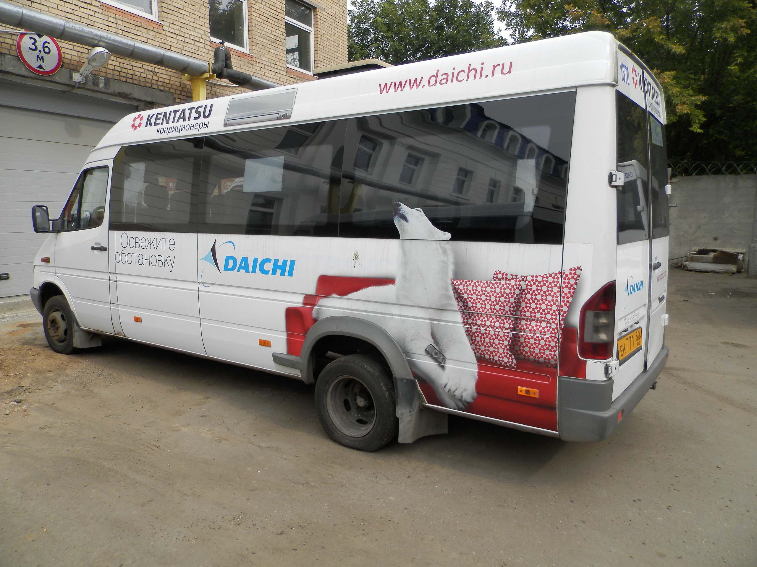 В качестве рекламоносителей задействованы более 70 автобусов малой вместимости Mercedes Sprinter. 40 транспортных средств курсируют с рекламой кондиционеров Midea, а 34 − отданы под продвижение климатического оборудования Kentatsu.