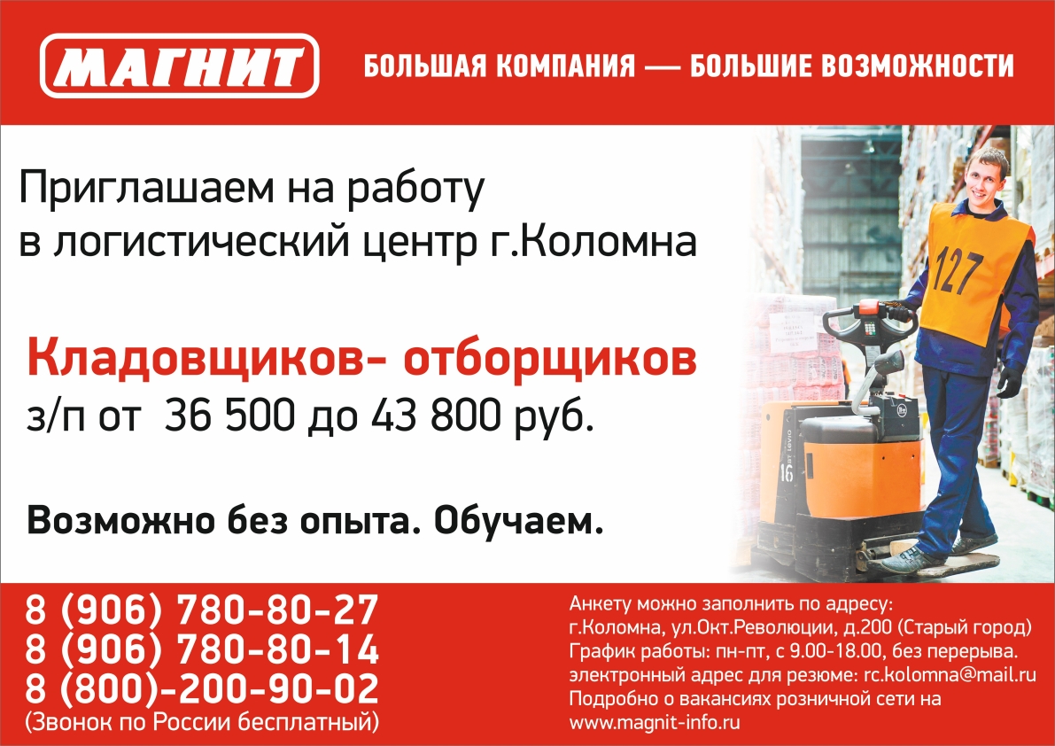 Розничная сеть «Магнит» является одним из крупнейших работодателей в России. Компании неоднократно присуждалось звание «Привлекательный работодатель года». Цель данной рекламной кампании, проходящей под слоганом «Большая компания – большие возможности», – привлечь на работу в логистический центр города Коломна новых сотрудников.