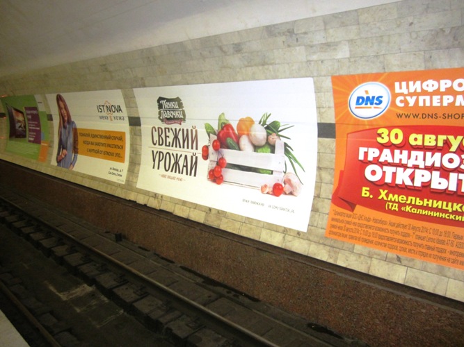 В Новосибирске в качестве рекламоносителей задействованы аппликации на путевых стенах на станциях метрополитена «Золотая нива», «Красный проспект» и «Заельцовская». Креатив разработан студией «Feel Factory».