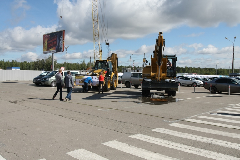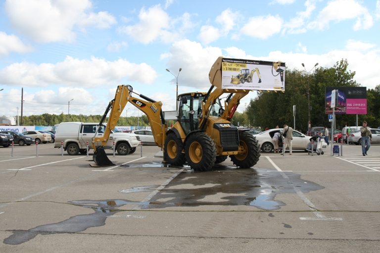 В течение сентября 2014 года рекламное агентство «Нью-Тон Нижний Новгород» осуществляло экспозицию экскаватора-погрузчика от Caterpillar на территории международного аэропорта «Стригино» по заказу компании «Мантрак Восток».