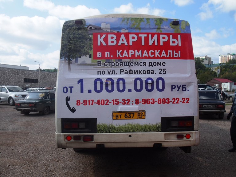 В течение месяца, с 20 сентября 2014 года рекламное агентство «Нью-Тон Уфа» реализовывает рекламную кампанию, информирующую о продажах квартир в поселке Кармаскалы, по заказу строительной компании «Эверест».