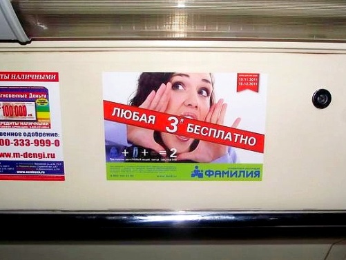Российская торговая компания «Фамилия», включающая в свою сеть 63 универмага, проводит рекламную кампанию в поддержку акции «Каждая третья вещь бесплатно!». Кампания проходит в г. Москве с использованием возможностей транзитной рекламы. Проект реализует рекламное агентство «Нью-Тон».