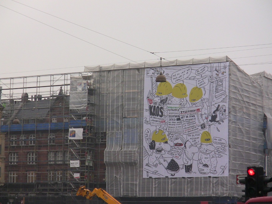 В Москве запрещена реклама на сетках, закрывающих дома во время реставрации фасадов. В Копенгагене же строительные леса закрыты большими форматами с рекламой. Да и на крышах реклама есть (даже на исторических зданиях на Ратушной площади).