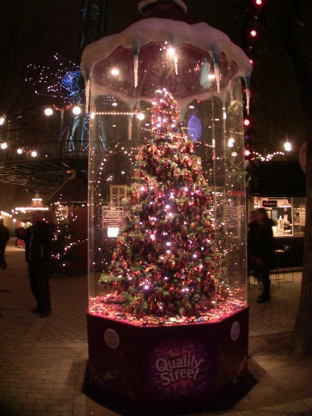 Далее приведу пример нестандартной рекламы. Выделилась компания “Nestle”. Накануне Рождества в центральном парке Тиволи в Копенгагене “Nestle” в поддержку своего конфетного бренда “Quality Street” организовала “сладкую улицу”. В начале “сладкой улицы” установлена ёлка, украшенная конфетами.