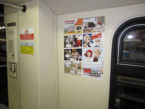 «Креативная идея рекламы в метро реализована в виде комиксов. Истории изобретения кондиционера, инвертора и других продуктов Toshiba в виде ярких картинок должны были увеличить время контакта с потребителем. Разработаны 3 разных комикса, чтобы каждый пассажир метро в течение месяца мог увидеть и запомнить несколько разных сюжетов о кондиционерах Toshiba. Все макеты - в метро, на щитах и транспорте - использовали одних и тех же «комиксовых» персонажей – японского изобретателя и его помощницу. Креативная стратегия реализована под слоганом «Кондиционеры Toshiba. Наш лучший инвертор», - комментирует Ольга Волгина, менеджер по рекламе компании AHI Carrier.