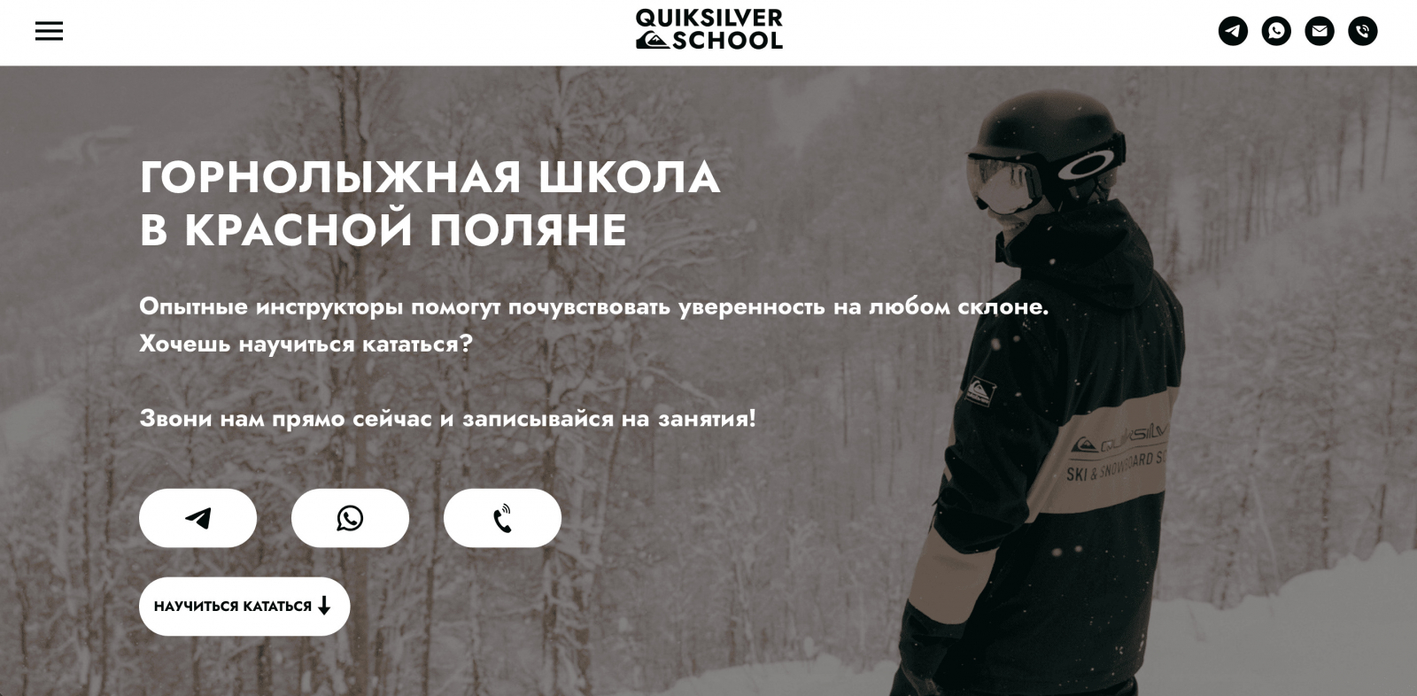 Quiksilver School — это одна из самых известных школ в Красной Поляне, которая предлагает услуги как для новичков, так и для опытных райдеров. Особенность этой школы в том, что она работает с международными инструкторами, которые имеют высокие квалификационные сертификаты. Школа специализируется как на индивидуальных, так и на групповых занятиях.